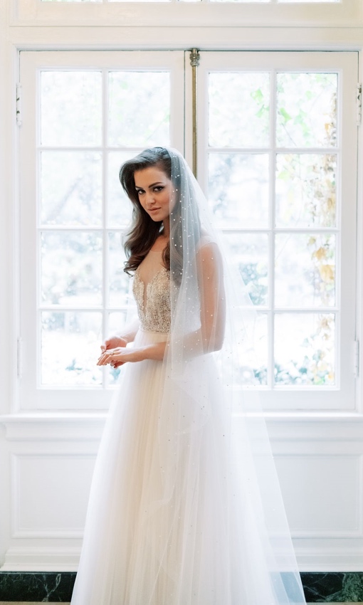 Toni Federici crafts innovative and diverse accessories that give more possibilities than ever. Tiaras, combs, hair brooches, pins, and fresh asymmetrical designs are available in a myriad of styles. Her veils are exclusive designs, with shapes that compliment your gown and body. Toni Federici’s designs are all about being unique and finding what feels good for you.