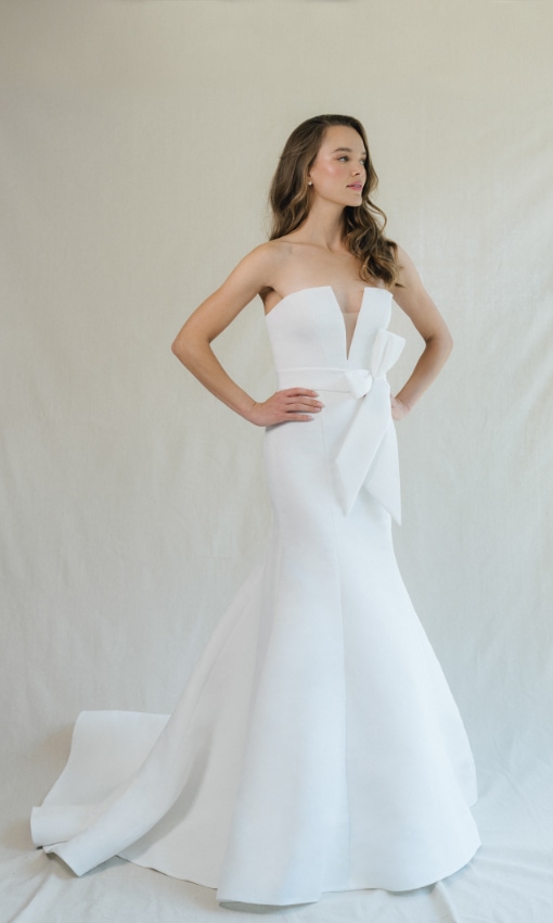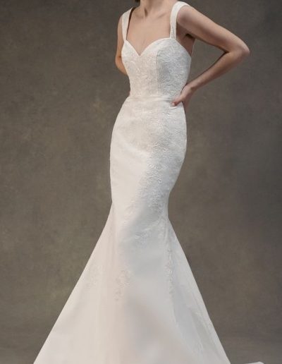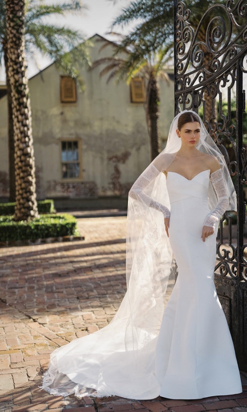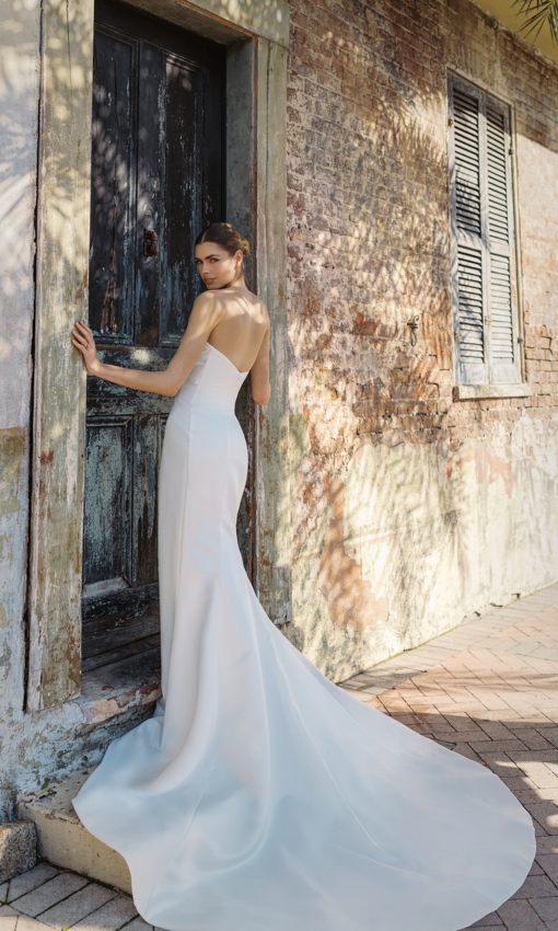 The Blue Willow by Anne Barge gowns were created to suit the needs of brides wanting Anne’s signature Couture look at a more moderate price point. The collection was designed to reach a broader audience of fashionistas. Gown styles feature tailored clean lines and architectural silhouettes with delicate details. This collection is designed in the best poly-blend fabrics and has been given the same attention to quality and fit as her other lines.